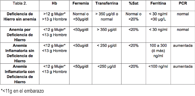 Además del estudio de la hemoglobina y los parámetros eritrocitarios en el hemograma, debe complementarse el estudio con un perfil de hierro que incluya: